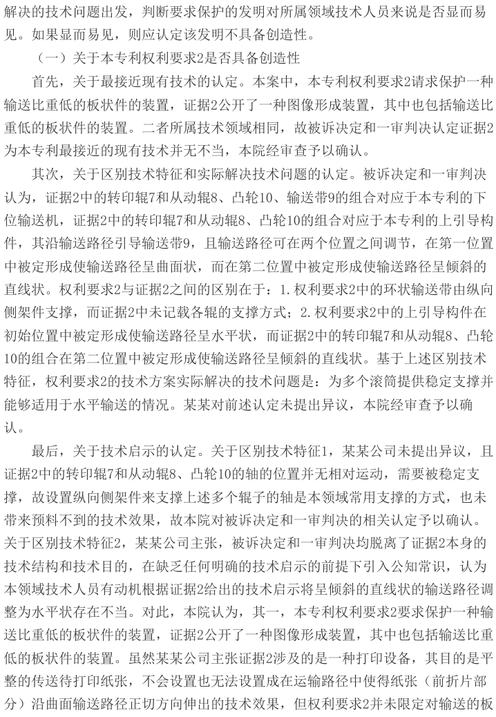 本案二审争议焦点为本专利权利要求1是否具备创造性。