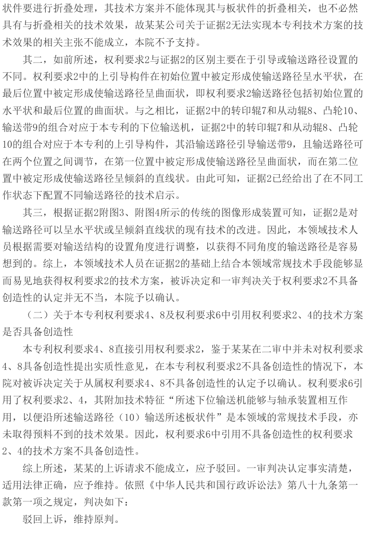 最高院认定, 证据1公开了通过抽吸装置负压排出废气的技术方案,但该抽吸装置会影响冷却气流的稳定性,进而影响丝条均匀性。公知常识证据已明确,保持冷却气流稳定是保证丝条质量的基本要求,并教导了可通过在吹风头内形成正压使气流从上端吹出的技术手段。因此,本领域技术人员在面对提高丝条均匀性的技术问题时,有动机移除证据1中的抽吸装置,并通过调整鼓风腔气压使废气从内向外吹出,该技术效果是可预料的。被诉决定和一审判决关于本专利权利要求1不具备创造性的认定正确。鉴于某某公司对权利要求1不具备创造性无异议后,不再坚持其他权利要求的创造性,故对其他权利要求的无效认定予以确认。最终,最高院驳回上诉,维持原判。