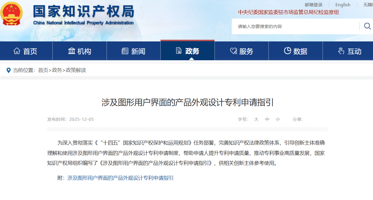 国知局发布《涉及图形用户界面的产品外观设计专利申请指引》