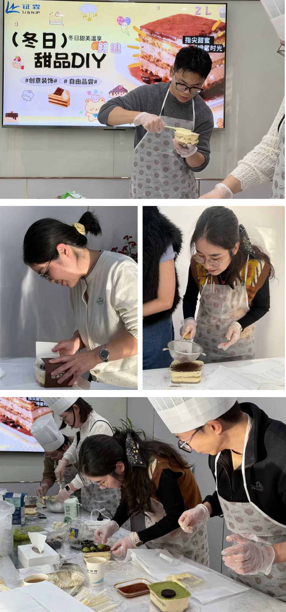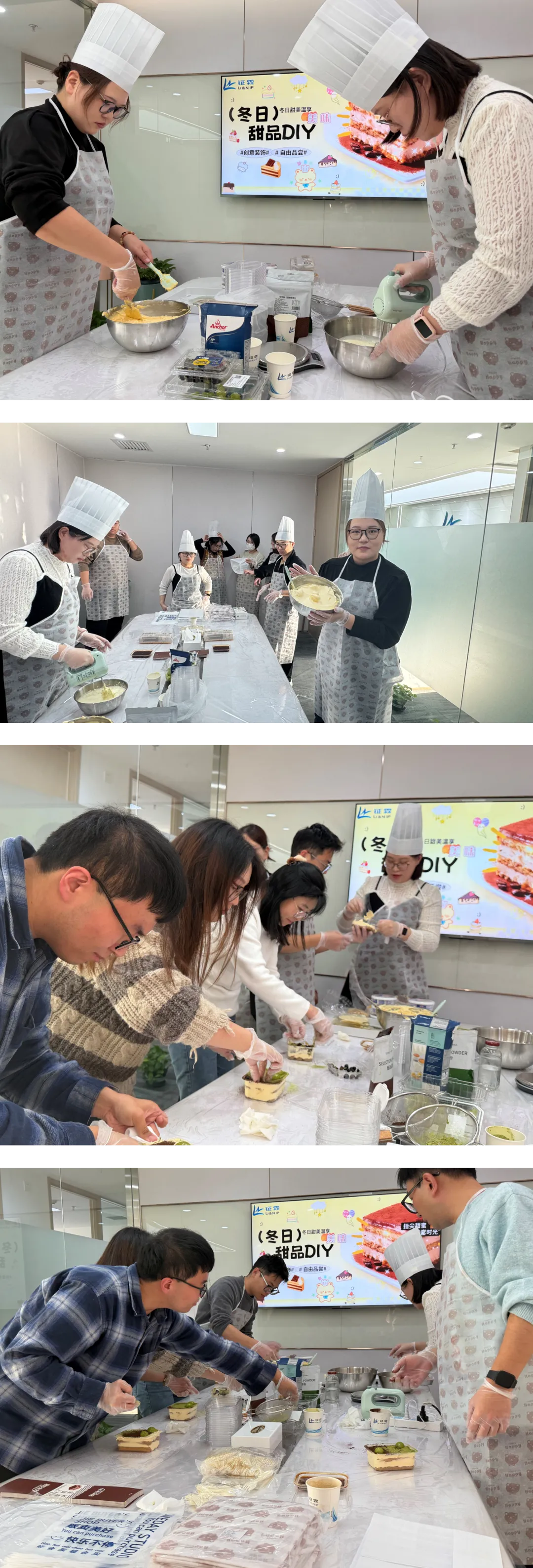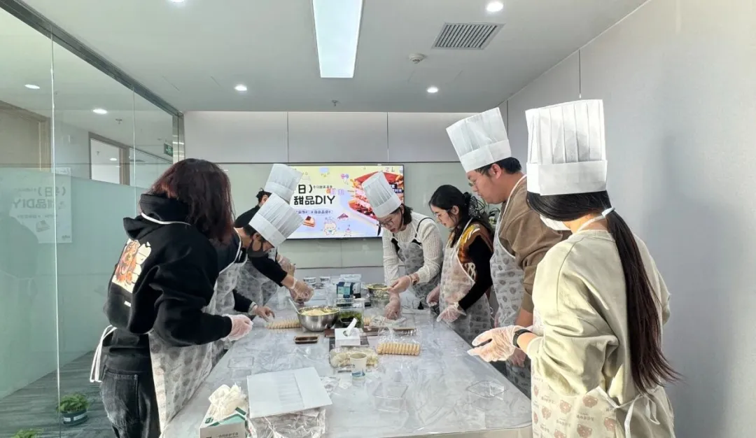 会议室中没有键盘的敲击声,只有打蛋器的旋转声;没有严肃的讨论,只有伙伴们的欢声笑语。从称量原料到混合搅拌,从铺层塑形到创意装饰,原本略显生疏的动作,在老师的指导和伙伴们的互助下越来越熟练。每个人都沉浸在创造美味的快乐中。