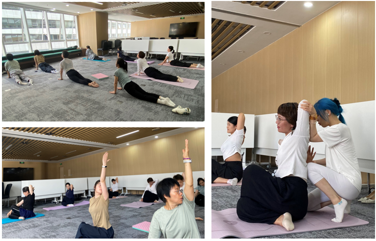 课程由经验丰富的瑜伽教师带领,内容涵盖肩颈放松、脊柱调理、核心强化等实用主题,兼顾不同员工的体能状况与练习经验。无论是否曾有瑜伽练习经历,员工均能参与其中,在科学的引导中提升身体柔韧性、缓解局部疲劳。