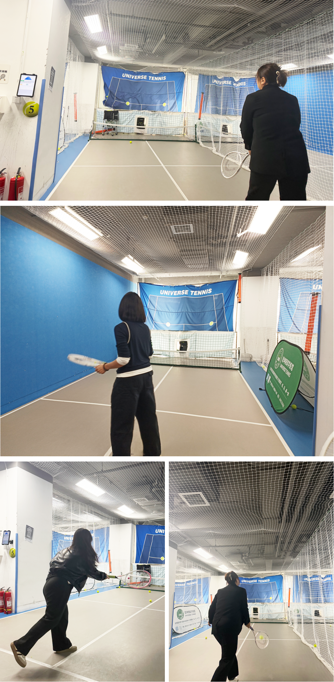 赛前大家还在讨论工作安排,站上赛场瞬间切换“竞技模式”:握拍、屈膝、挥臂,一系列动作行云流水。发球时力道十足,每一记精彩的发球,引得场边观赛同事阵阵喝彩;每一次成功回球都为自己握拳鼓劲。
