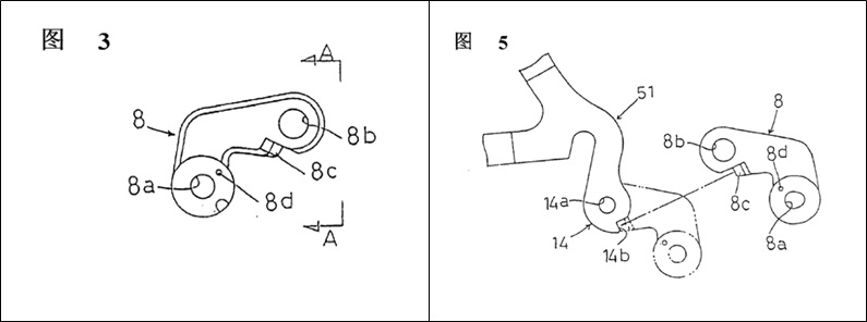 案例1中,说明书附图部分虽然可以清楚的看到8a、8b的形状为大致圆形,但是株式会社岛野却忽略了说明书文字部分的记载信息。说明书文字部分记载 8a和8b的形状不仅要满足圆形孔形状,还要满足能够供螺栓穿过的特征。株式会社岛野在专利权利要求1、3中将“圆的螺栓孔”、“圆形螺栓孔”以及“螺栓孔”概括修改为“圆形孔”,删除了“供螺栓穿过”的技术特征,导致修改后的权利要求中记载的技术信息与原始申请文件记载的技术信息不一致,故最终会得到修改超出原说明书和权利要求书记载的范围的判定结果。而权利要求6通过附加技术特征明确将8b限定为使连接螺栓穿过的圆形孔,修改后的权利要求中记载的技术信息与原始申请文件记载的技术信息一致,故最终会得到修改未超出原说明书和权利要求书记载的范围的判定结果。