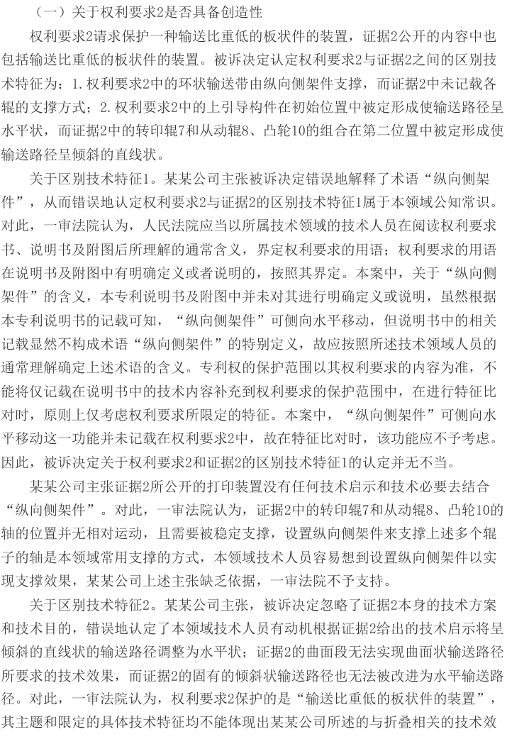 本案二审争议焦点为本专利权利要求1是否具备创造性。