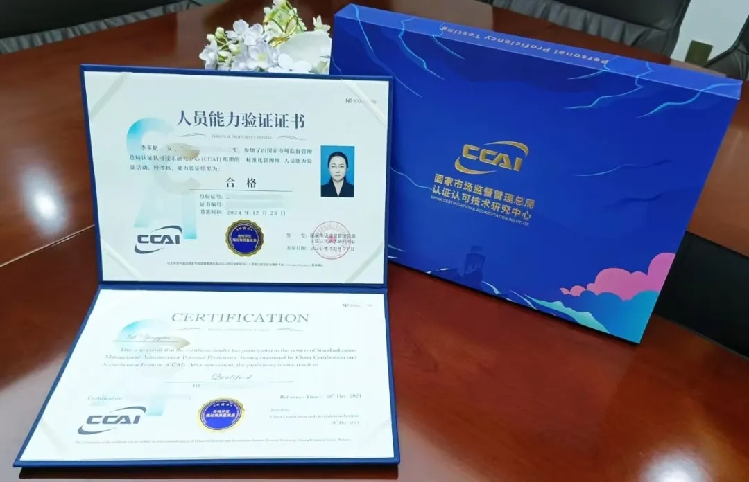 钲霖知产传来重磅喜讯——所长李英艳女士顺利通过国家市场监督管理总局认证认可技术研究中心(CCAI)的严格考核与能力验证,成功斩获“标准化管理师”专业资质认证,成为兼具知识产权专业深度与标准化管理能力的复合型人才,为钲霖知产标准化服务体系建设注入强劲动力!