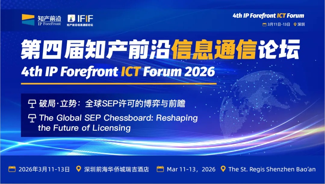 2026年3月11日-13日,亚太地区最具影响力的标准必要专利(SEP)专业盛会 — 第四届知产前沿信息通信论坛,即将在深圳隆重举办。北京钲霖知识产权将重磅亮相这场知产行业前沿峰会,携专业知识产权服务方案与行业实践成果,与全球顶尖知产精英、产业领袖深度交流,共探标准专利前沿趋势,共筑信息通信领域知识产权生态新未来。