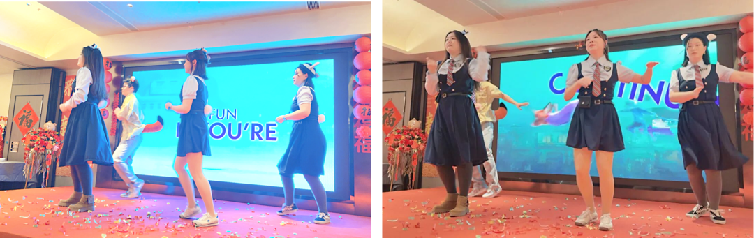 经典曲艺《三句半》幽默诙谐,巧妙融入公司日常与行业洞察,句句引人会心一笑,台下掌声与笑声连绵不断。