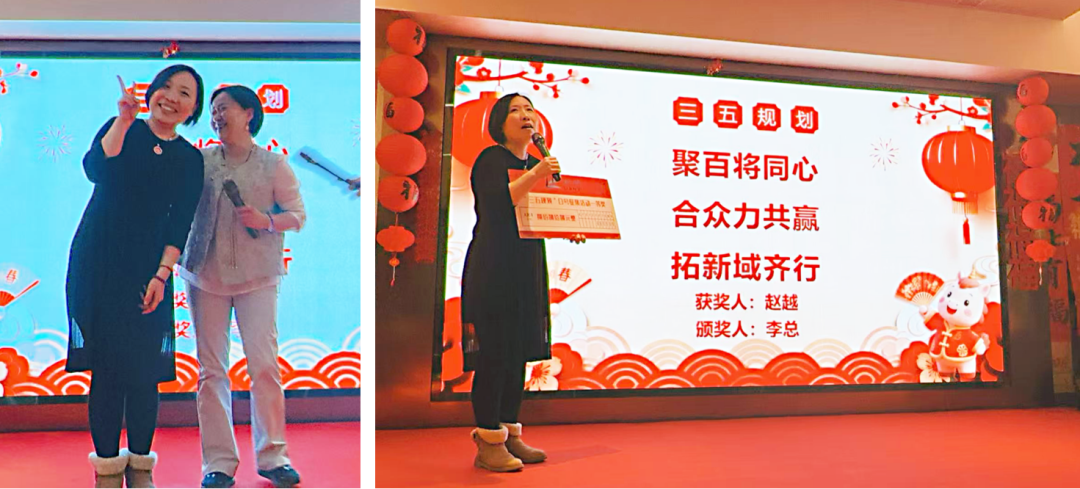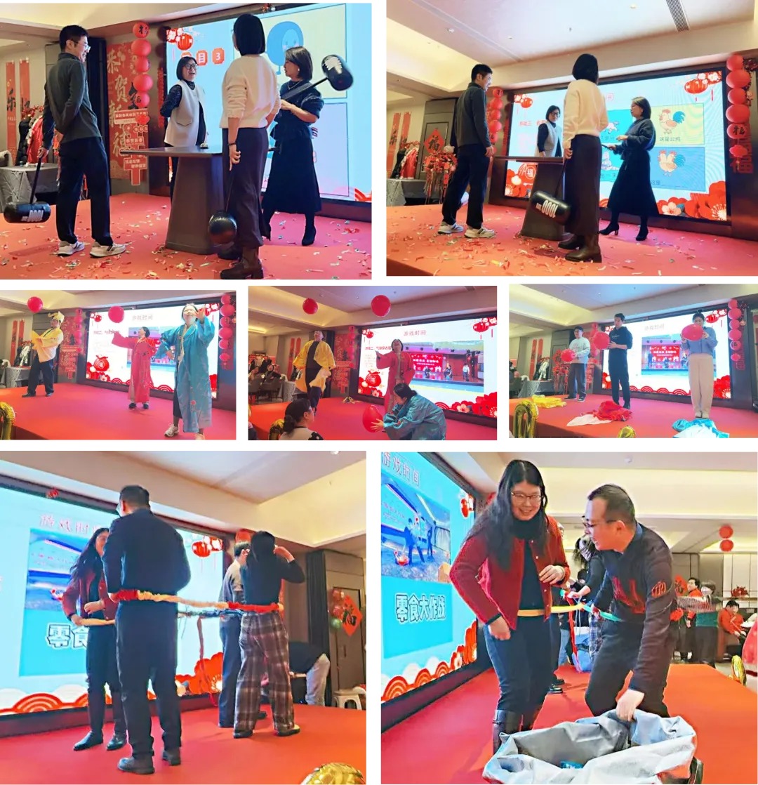 而接下来的《高雅人士》与《ZOO》两个节目,更以活泼的创意与青春的张力,将钲霖人乐观向上、多才多艺、敢秀敢燃的团队精神演绎得淋漓尽致。 荣耀颁奖,致敬奋斗之光 星光不问赶路人,时光不负有心人。如果说舞台上的节目展现了团队的活力与才情,那么年会现场的多重颁奖环节,则是对每一位在平凡岗位上默默耕耘、持续发光的钲霖人最直接的致敬。 最佳新人奖的颁发,是对新伙伴快速融入、崭露头角的肯定;为第二、三、四、五年及以上司龄员工颁奖,是对大家长期坚守、与公司共成长的感恩;优秀员工奖的揭晓,更是对年度表现突出、业绩斐然的伙伴们的最高赞誉。当一枚枚镌刻着钲霖司龄的专属司徽与满载祝福的红包递至获奖者手中,当热烈的掌声与真诚的祝贺环绕会场,荣耀与自豪在每一张笑脸上清晰绽放。这份共同的荣光,也激励着在场的每一位钲霖人,在新的一年里凝心聚力、奋勇争先,共同攀登下一座高峰。 本次还特别设置了钲霖“三五规划”口号颁奖及李所长致辞环节,系统阐释了钲霖知产面向未来的战略视野与坚定航向。 由企划部赵越老师提出的核心口号“聚百将同心,合众力共赢,拓新域齐行”,不仅凝聚着钲霖团队同心共进的信念,更成为全体钲霖人共同的奋斗指引。 趣味游戏,解锁欢乐时光 舞台表演与颁奖间隙,趣味游戏轮番上阵,将现场氛围推向一个又一个高潮。“零食大作战” 让大家在趣味比拼中收获美味与快乐;“气球穿衣服” 游戏考验着伙伴们的默契与灵活,现场爆笑不断;“看图猜词” 则兼顾趣味与知识,大家踊跃参与、积极抢答,欢声笑语填满了每一个角落。游戏不仅拉近了彼此的距离,更让大家在轻松愉悦的氛围中感受到了钲霖大家庭的温暖。 圆满落幕,奔赴美好新程