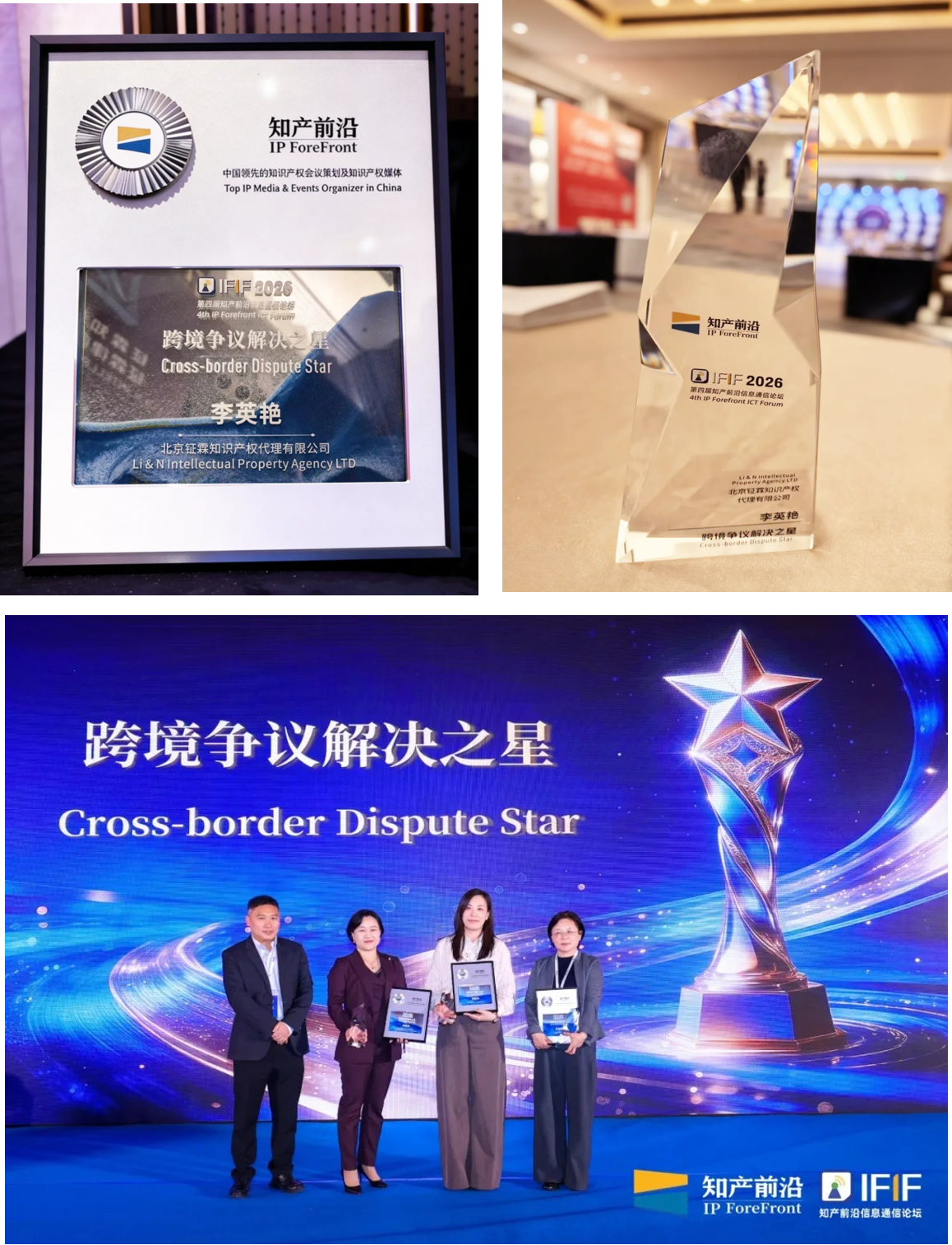 深圳前海,春意渐浓,第四届知产前沿信息通信论坛盛大召开,作为亚太地区最具影响力的标准必要专利(SEP)专业盛会之一,论坛汇聚了国内外法院、领先企业及律所专家,共探公平、高效的SEP治理新范式。钲霖知产深度参与,以专业主持、跨境对话、重磅奖项三大高光时刻,彰显在SEP领域的深厚实力与全球视野。 深度主持:锚定全球SEP诉讼高地 3月11日下午,由钲霖知产所长李英艳女士受邀主持的专题研讨会《全球SEP诉讼高地博弈与新兴战场》 重磅开启。携手业内顶尖专家,聚焦全球SEP诉讼核心态势,直击产业痛点,深度拆解博弈格局,前瞻性洞察SEP战场。现场观点交锋、干货频出,充分展现了钲霖知产在SEP领域的专业引领力。 围炉对话:架起中日SEP实务交流桥梁 紧承会前研讨会,一场备受期待的围炉对话《日本SEP诉讼实务与发展前瞻》将现场氛围推向高潮。钲霖知产所长李英艳女士与日本SEP专家组主席二又俊文先生展开了一对一深度对话。围绕从Pantech v. Google案透视日本SEP裁判新动向、日本SEP在全球诉讼版图中的核心角色与战略布局、创新与平衡视角下日本SEP的未来发展路径三大核心议题展开交流。 这场中日专家之间的智慧碰撞,为现场观众提供了理解日本SEP生态的宝贵窗口,也为国内企业深耕日本市场、规避海外知产风险带来参考。 载誉加冕:斩获“跨境争议解决之星” 在本次论坛颁奖环节,钲霖知产所长李英艳女士凭借在跨境知识产权争议解决领域的卓越表现、丰富的实战案例与专业的法律服务能力,成功摘得“Star of Cross-border Dispute Star 跨境争议解决之星” 奖项。 这一奖项不仅是对李英艳女士个人专业素养的高度认可,更是业界对钲霖知产跨境知产服务实力的肯定。 钲霖以专业对话世界,用实力赢得认可 此次亮相第四届知产前沿信息通信论坛,钲霖知产从斩获殊荣到领衔研讨,从跨境对话到链接全球,充分展示了在标准必要专利(SEP)领域的专业实力与全球视野。 未来,钲霖知产将继续深耕知识产权前沿阵地,汇聚顶尖人才与智慧,助力企业在复杂的全球竞争格局中稳健前行,共同书写全球SEP治理新范式的中国篇章。